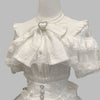 Bluză gotică Kawaii Lolita albă din dantelă, cu fundă și brâu tip corset