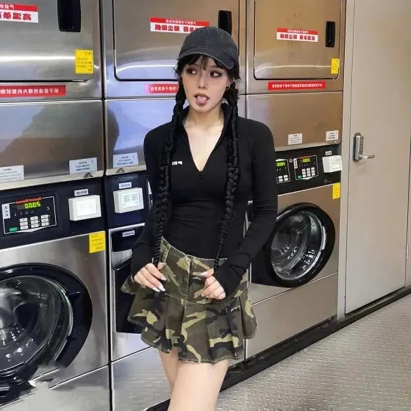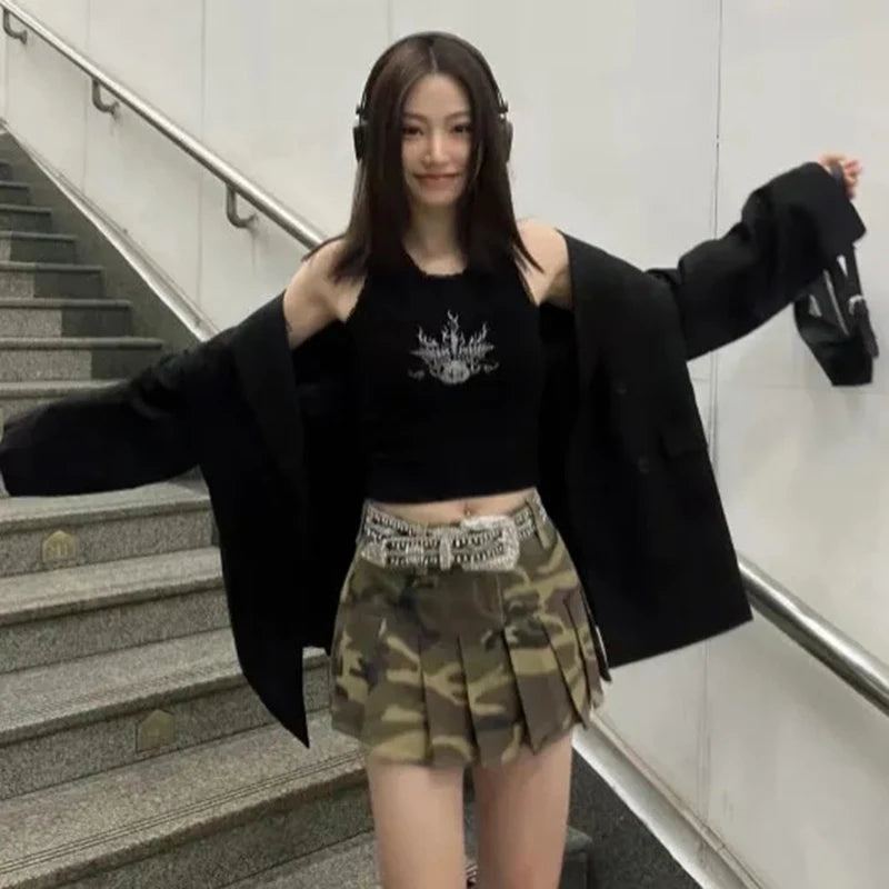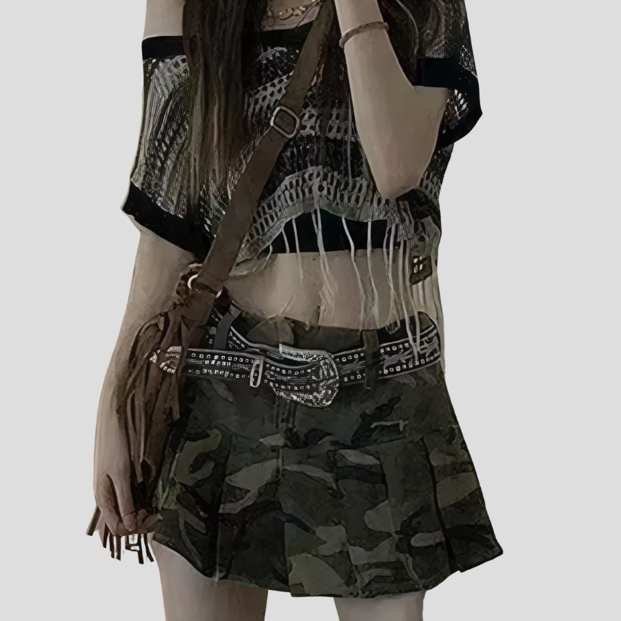 Fustă mini gotică camuflaj – fustă plisată alternativă