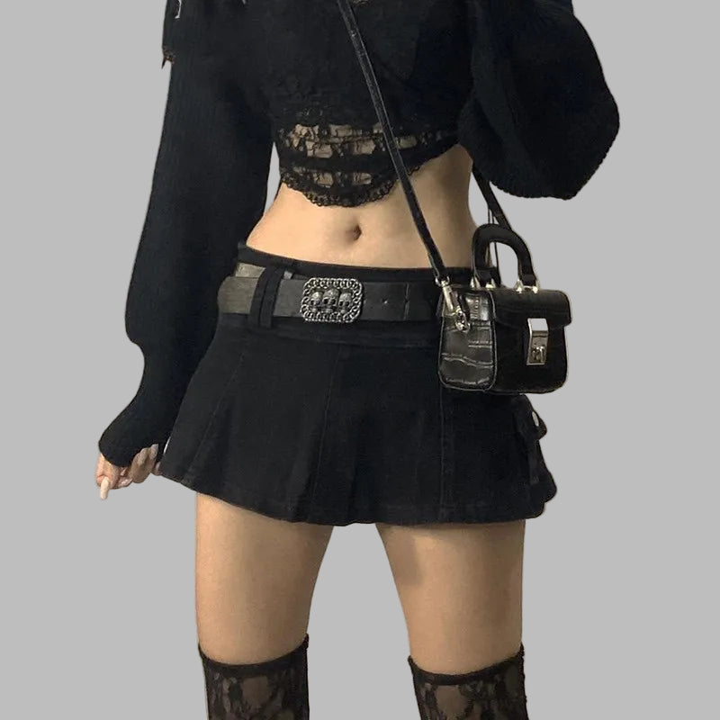 Fustă mini plisată gotică punk cu aplicație metalică Vezi opțiunile