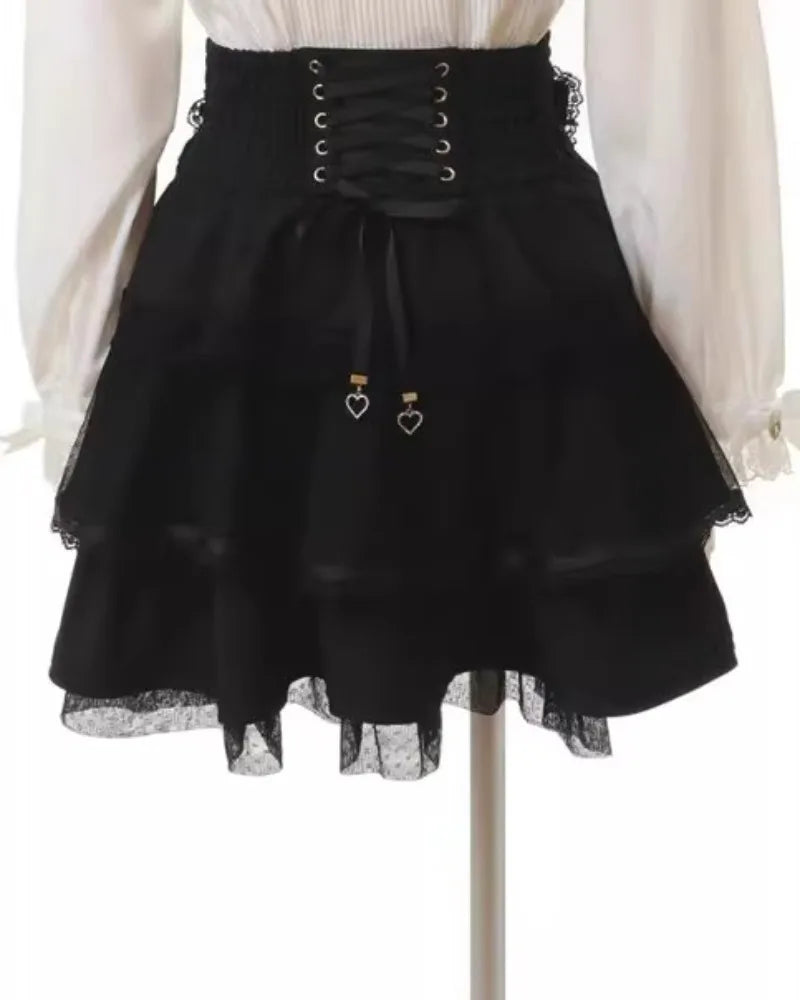 Fustă gotică rock cu volane și lanț cu perle