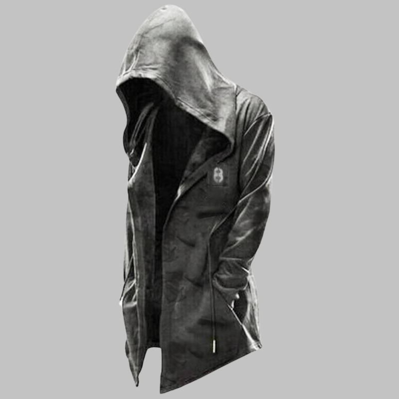 Pardesiu gotic lung cu glugă pentru bărbați – pardesiu negru lung