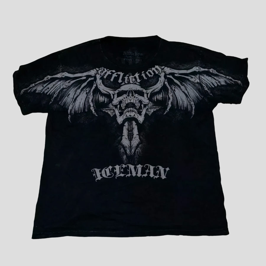 Tricou grunge metal Affliction cu craniu Iceman, mărimea 3XL