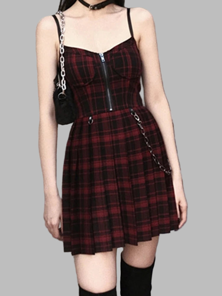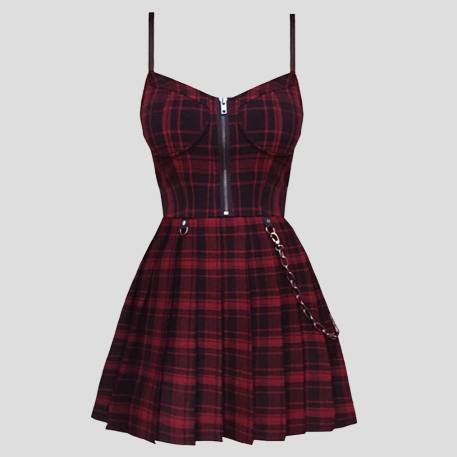 Rochie grunge punk vișinie cu carouri și lanț Vezi opțiunile