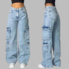 Pantaloni cargo deschiși la culoare din denim, stil rock, cu buzunare laterale