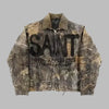 Geacă de blugi gri spălat vintage cu ținte, stil grunge rock metal