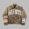 Geacă de blugi grunge rock metal cu imprimeu leopard și inscripții