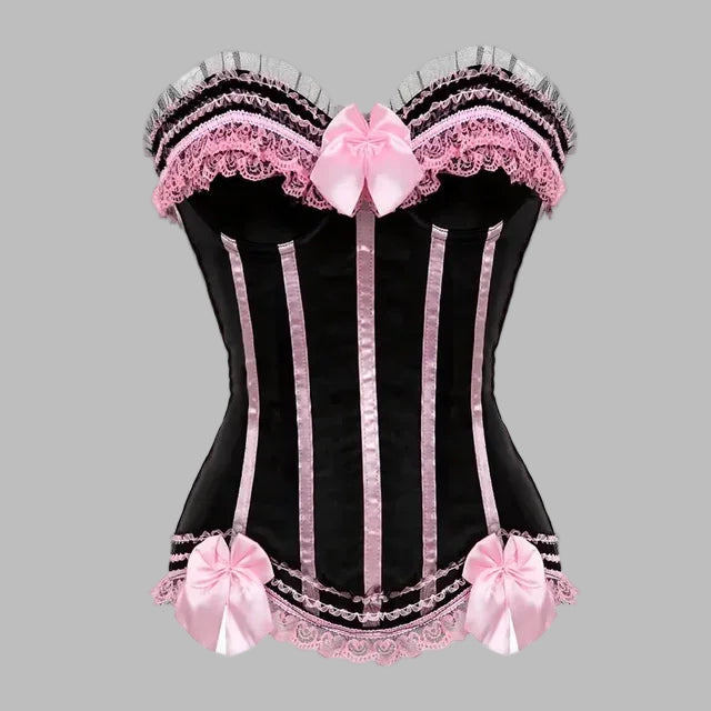 Corset Jirai Kei negru-roz cu funde și dantelă