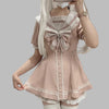 Rochie sailor Jirai Kei roz roz cu fundă, kawaii, mărimea XXL