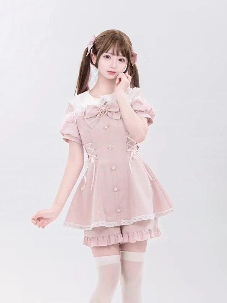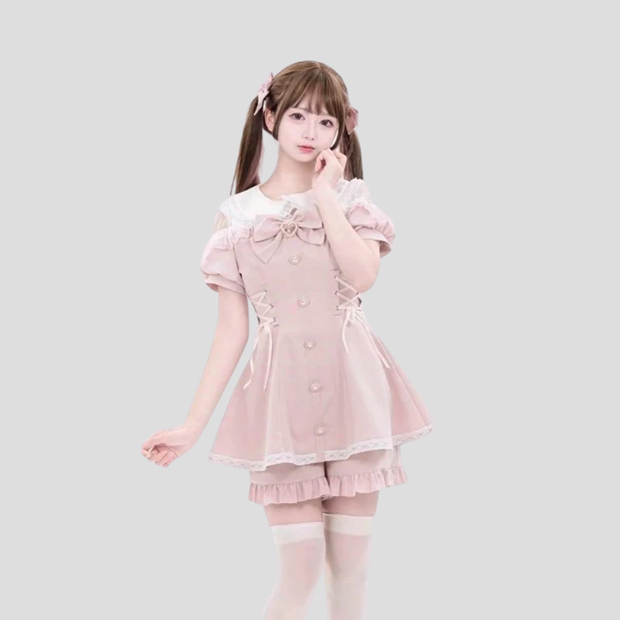 Rochie Jirai Kei roz roz cu fundă și șireturi laterale