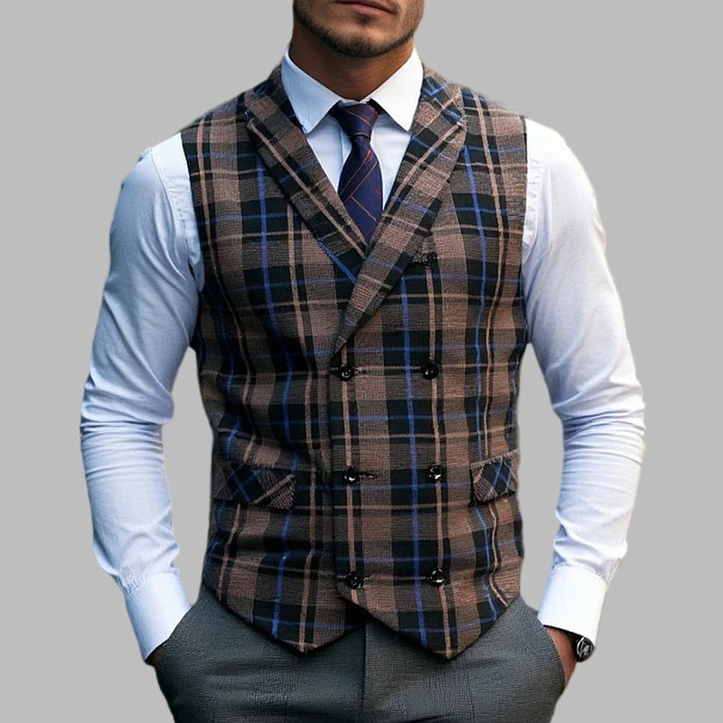 Vestă bărbătească elegantă cu carouri, stil vintage retro