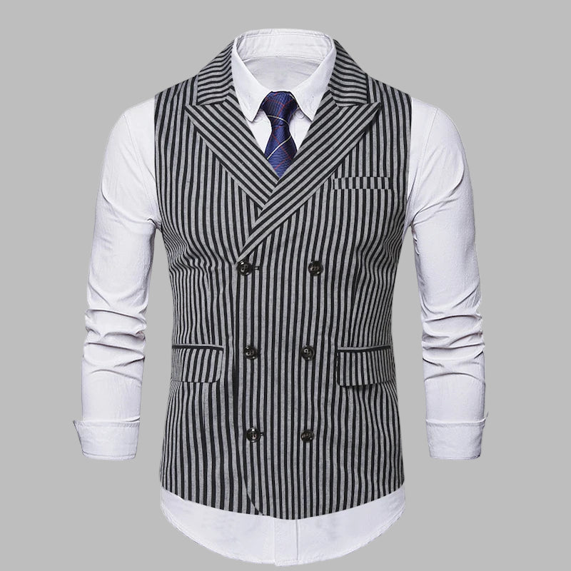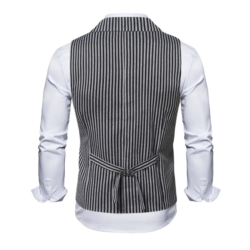 Vestă steampunk negru-alb cu dungi verticale și închidere dublu rând