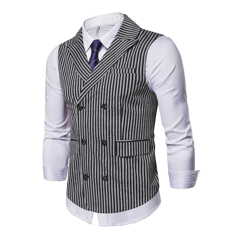 Vestă steampunk negru-alb cu dungi verticale și închidere dublu rând Vezi opțiunile