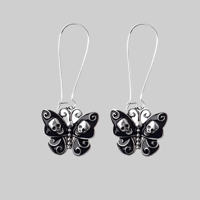 - Decorațiune: cranii gravate pe aripile fluturelui negru, ornament metalic