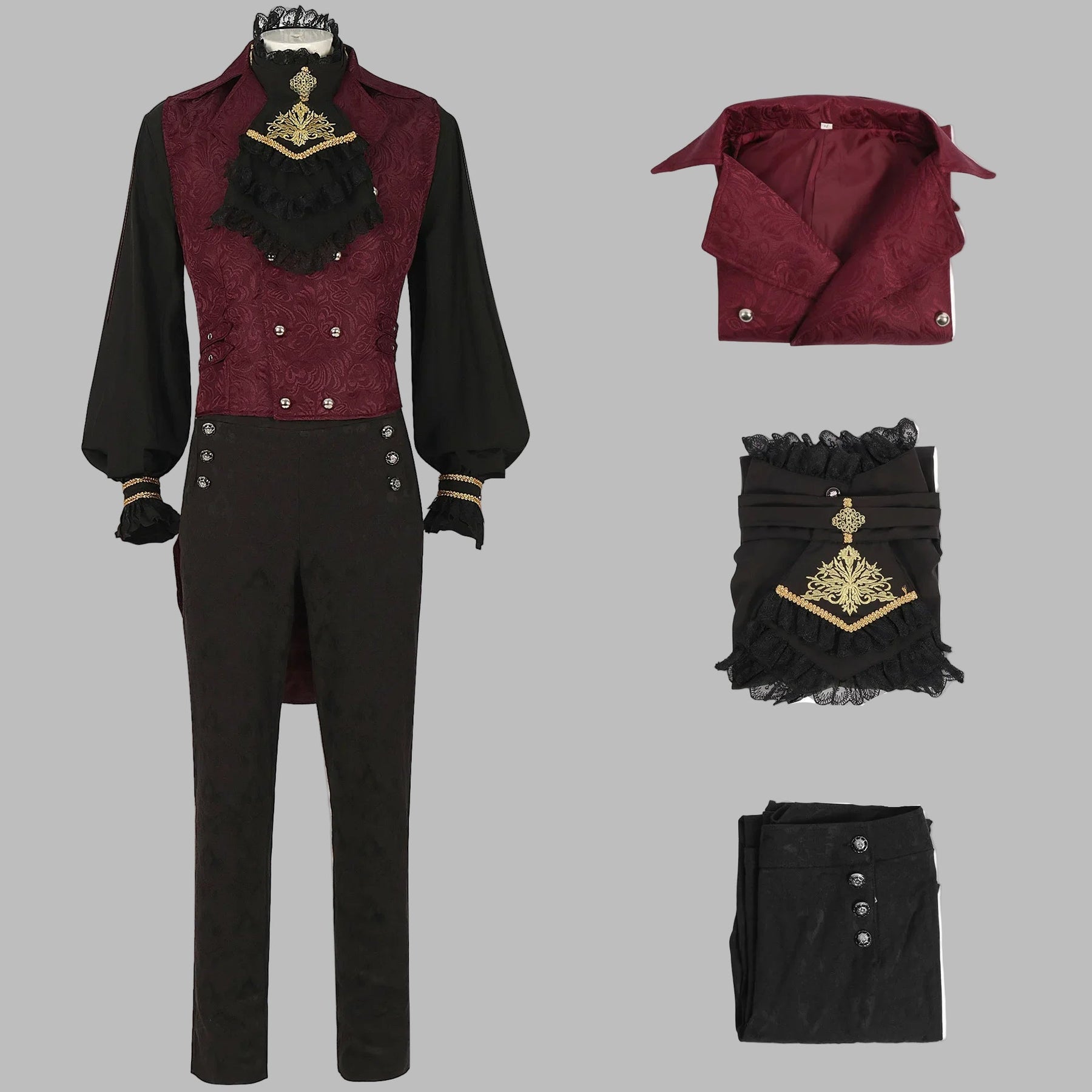 Set steampunk bărbătesc bordo-negru cu dantelă și detalii aurii