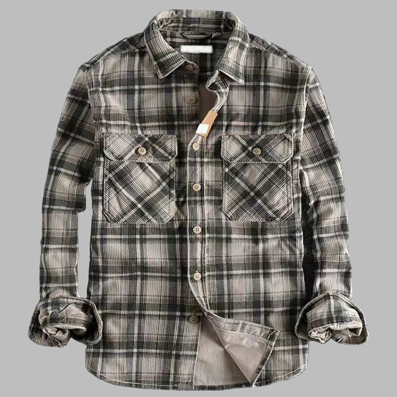 Camăși flanelate în carouri gri, stil grunge rock, cu buzunare