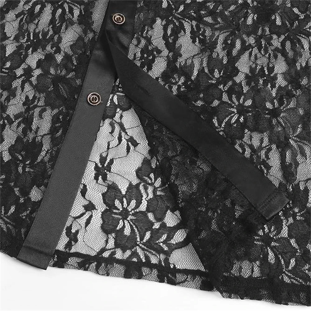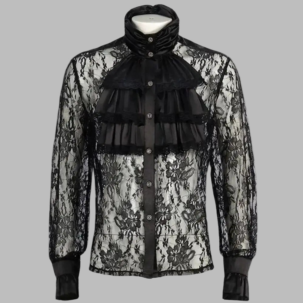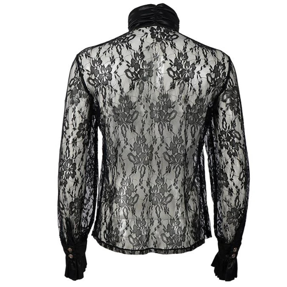 Camă gotică neagră din dantelă cu jabou pentru bărbați