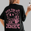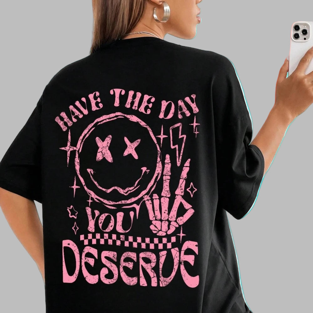 Tricou oversize grunge rock cu imprimeu smiley roz roz pentru femei