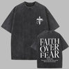 Tricou oversize grunge rock cu cruce și inscripția „Faith Over Fear” 3XL