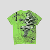 Tricou bărbătesc punk verde cu craniu și cruci, cu grafică