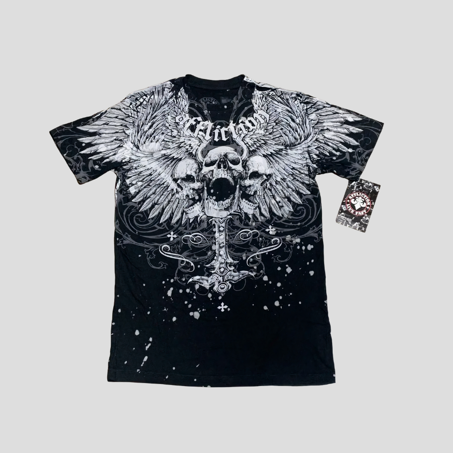 Tricou 4XL cu craniu înaripat și inscripție Affliction