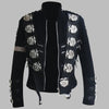 Jachetă gotică steampunk neagră din catifea cu decorațiuni metalice pentru bărbați