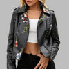 Geacă gotică din piele neagră cu ținte, flori și broderii pentru femei