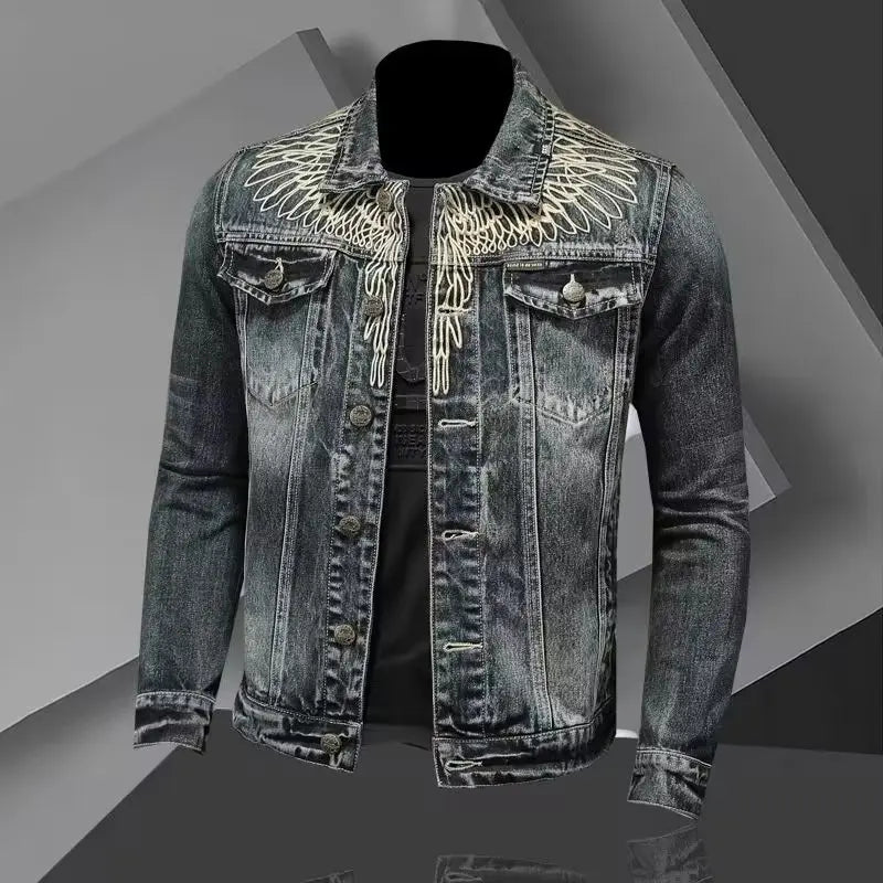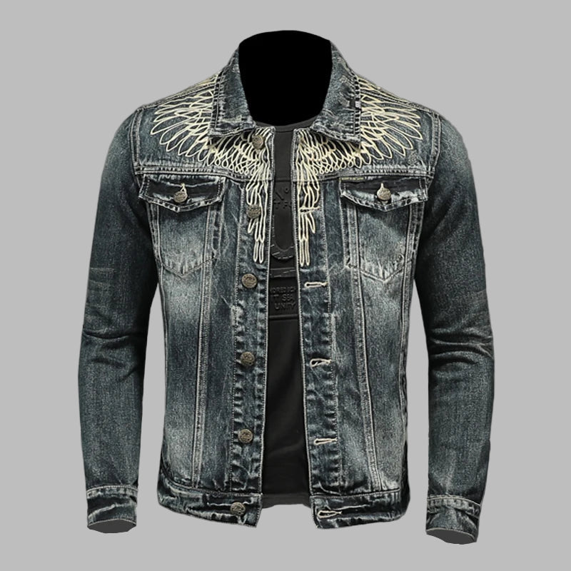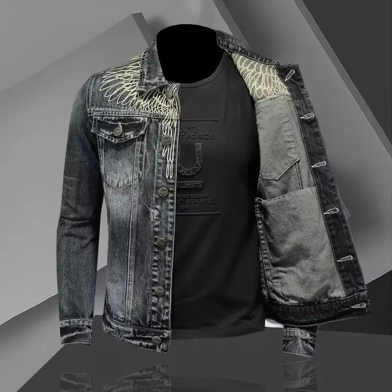 Geacă neagră din denim, stil grunge punk