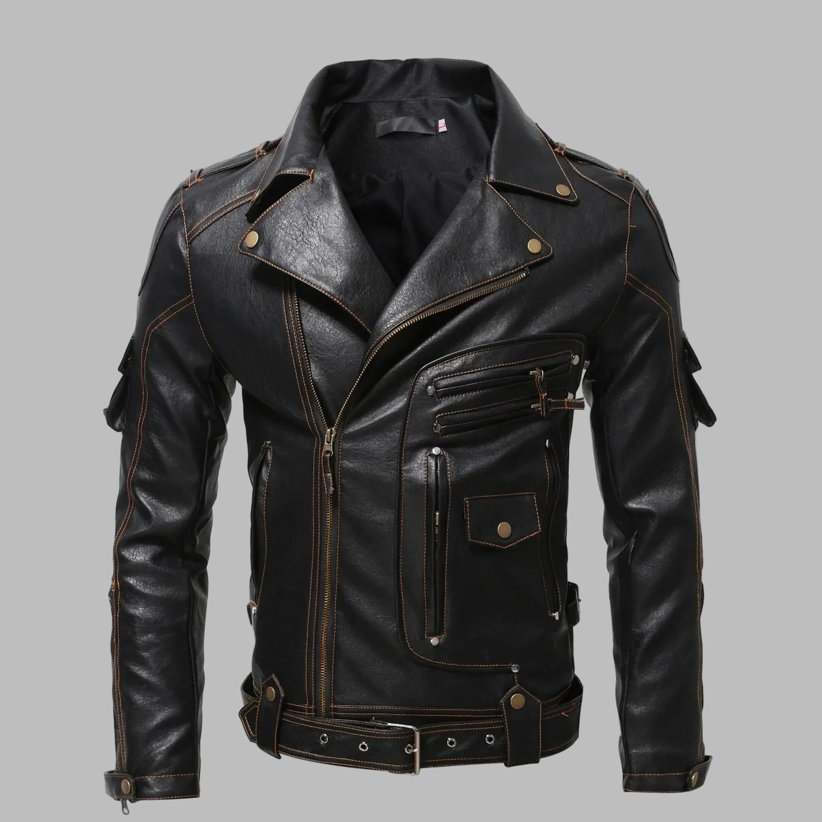 Geacă moto bărbătească din piele neagră, stil goth punk, cu ținte și curele