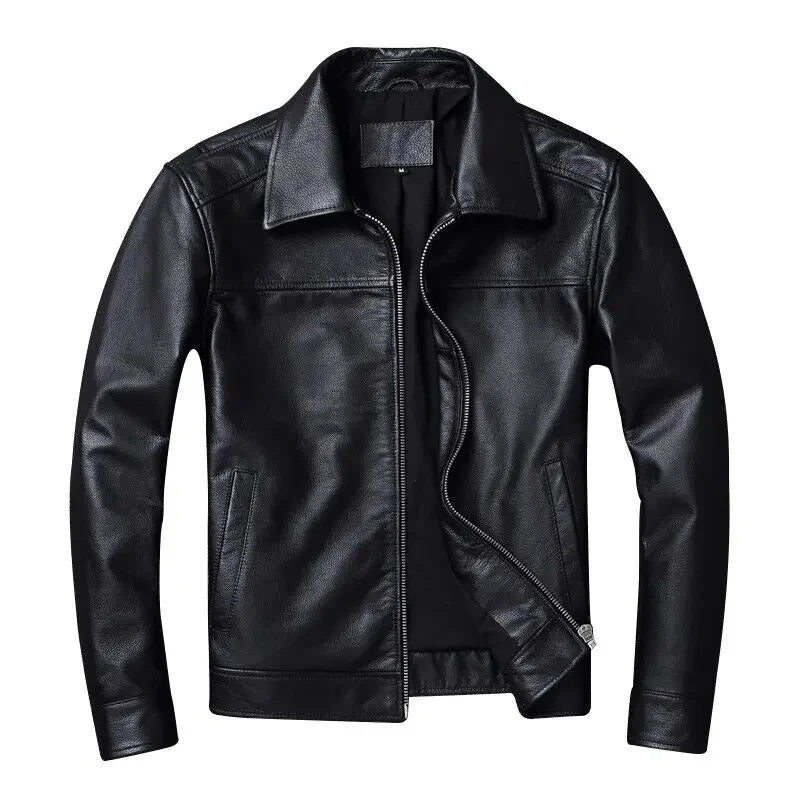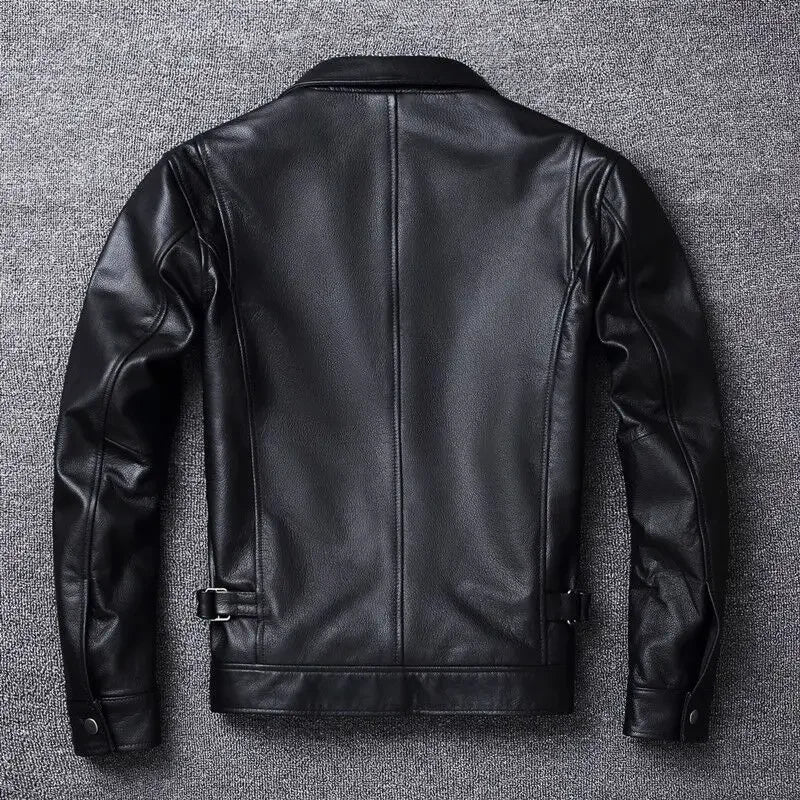 Geacă moto clasică din piele pentru bărbați, stil metal