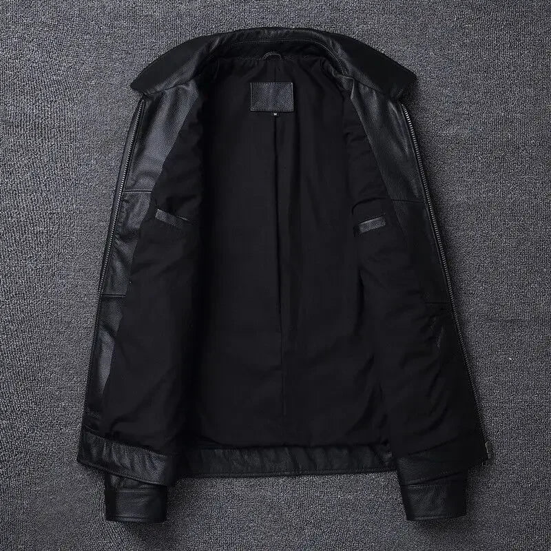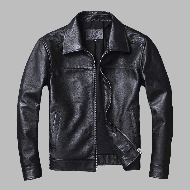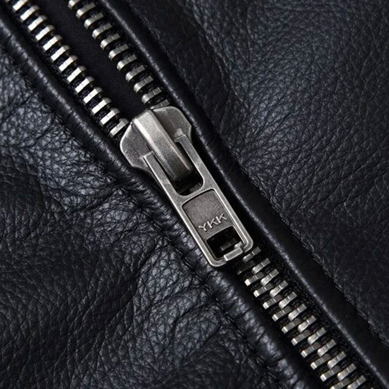 Geacă de piele bărbătească clasică de motociclist, stil metal