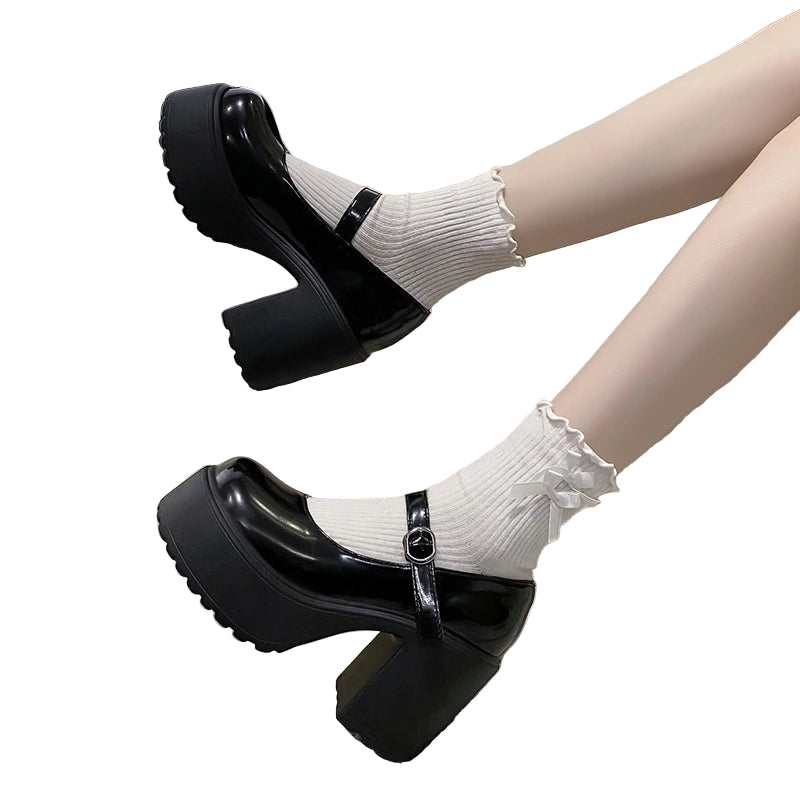 Pantofi Mary Jane cu platformă lăcuită, cu bareta, negri, stil metal