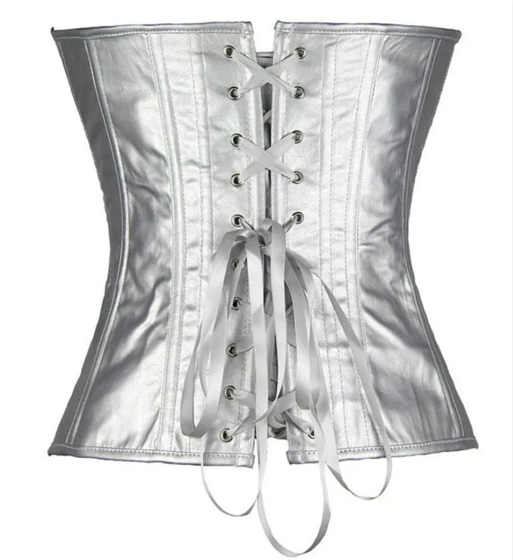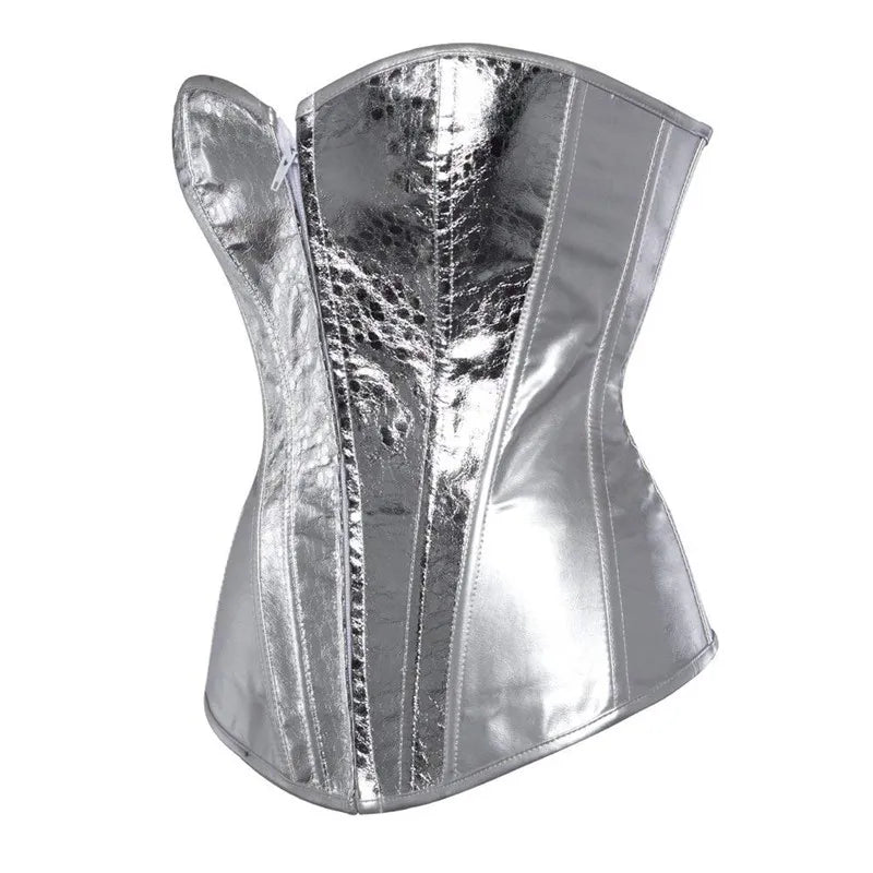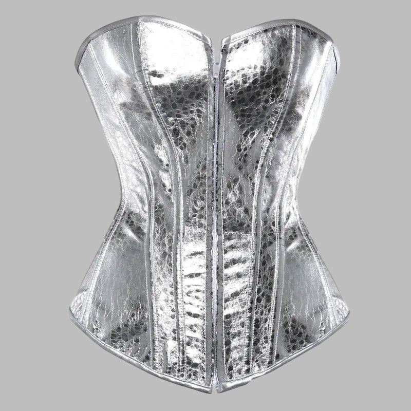Corset metalic argintiu cu efect de piele de șarpe și balene Vezi opțiunile