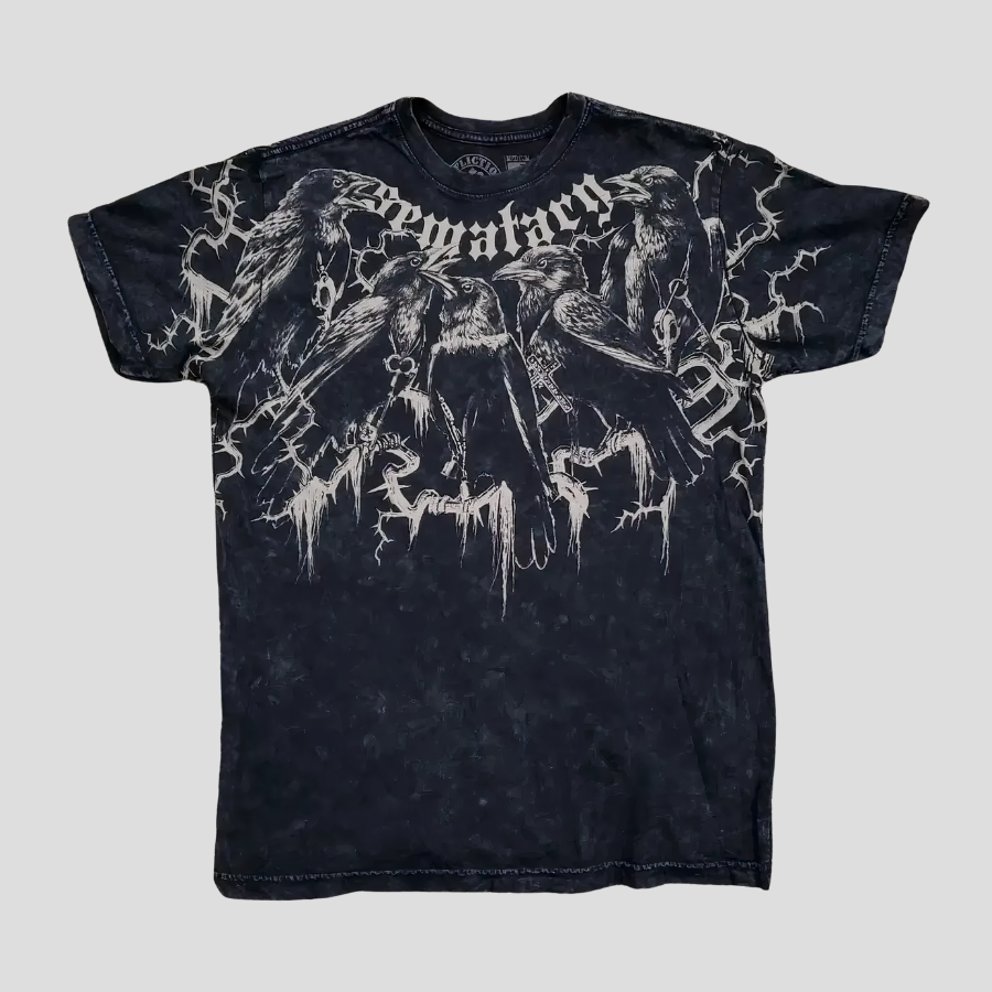 Tricou punk metal cu corbi și inscripție, negru Vezi opțiunile
