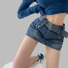 Fustă mini din denim albastru Rock cu bretele Vezi opțiunile