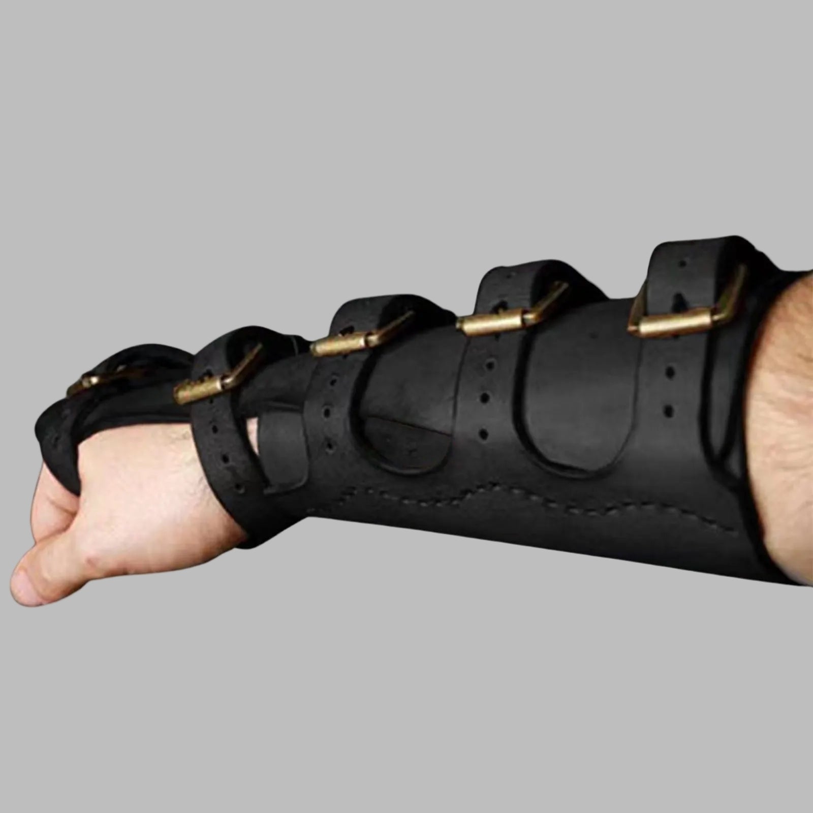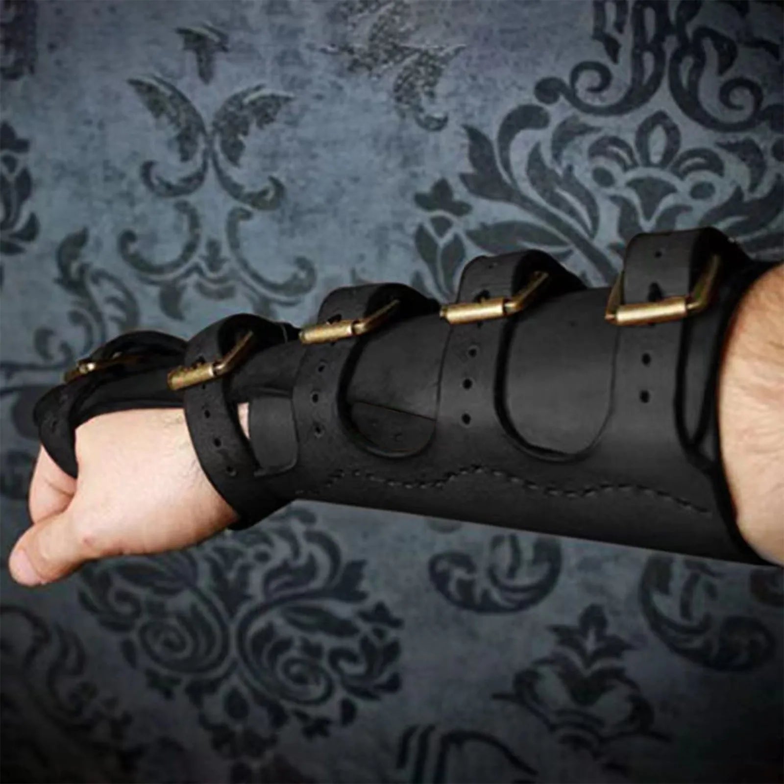 Protecții steampunk din piele neagră cu catarame din alamă Vezi opțiunile