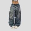 Pantaloni grunge oversize gri vintage cu buzunare cargo