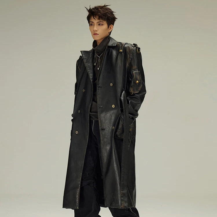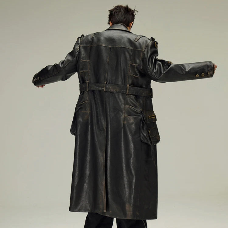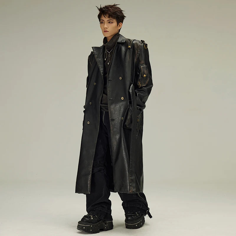 Palton lung negru din piele, gotic, stil alternativ