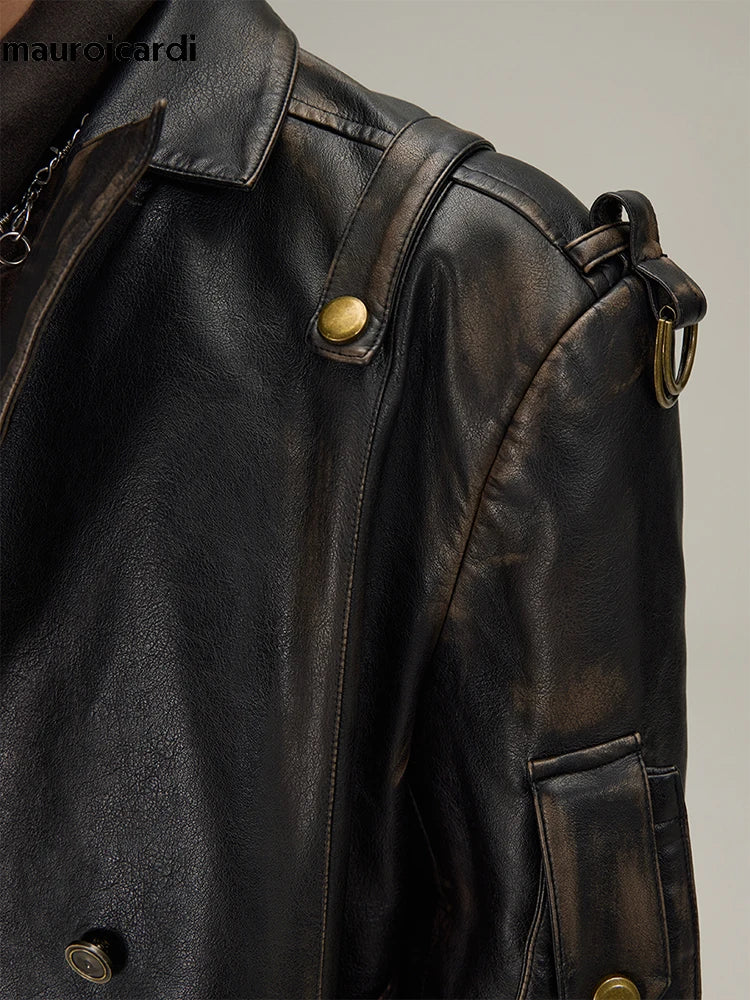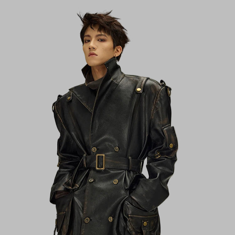Palton lung negru din piele, stil gotic alternativ