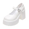 Pantofi Mary Jane cu platformă, curea și cataramă, albi