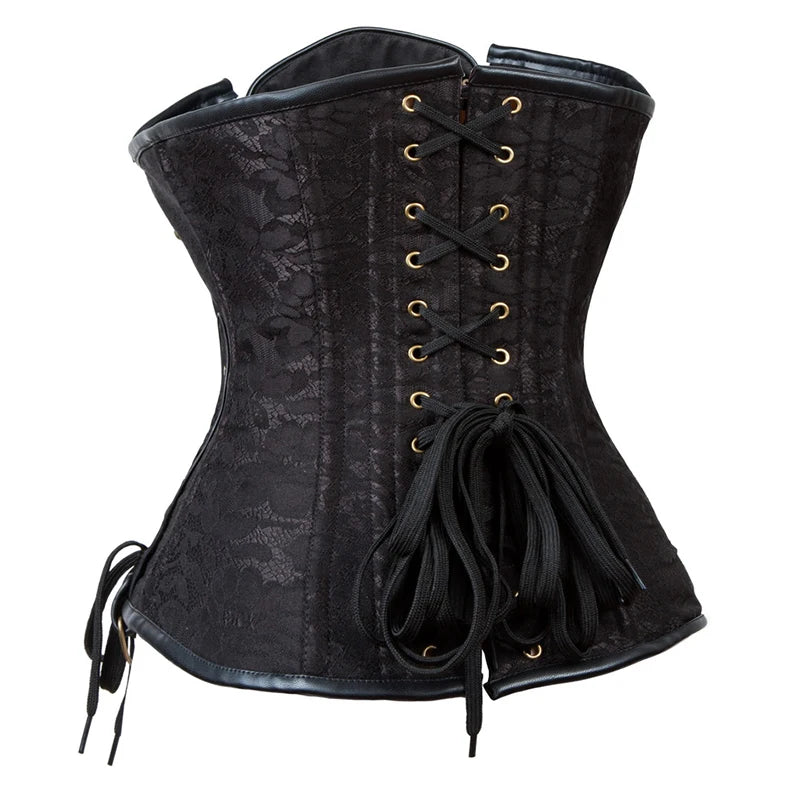 Corset gotic punk negru cu lanțuri, catarame aurii, stil steampunk