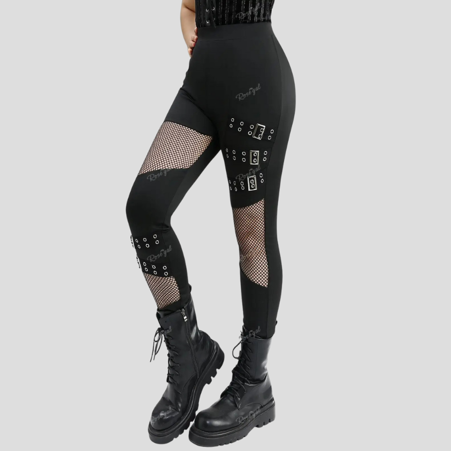 Colanți negri punk metal cu plasă și catarame Vezi opțiunile