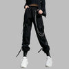Pantaloni cargo negri punk rock gotic cu lanțuri și buzunare