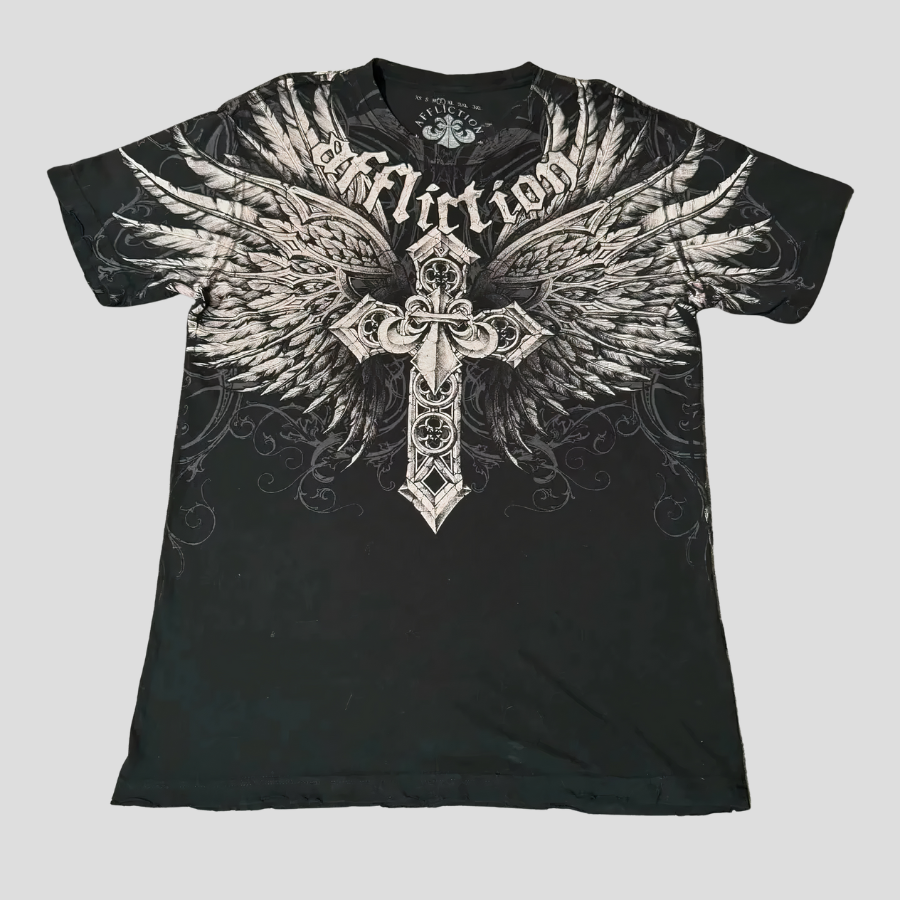 Tricou Punk Rock cu aripi și cruce, stil grunge