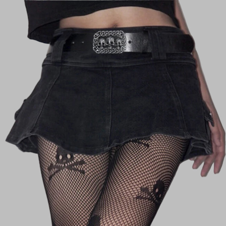 Fustă mini punk din denim negru cargo cu curea metalică Vezi opțiunile