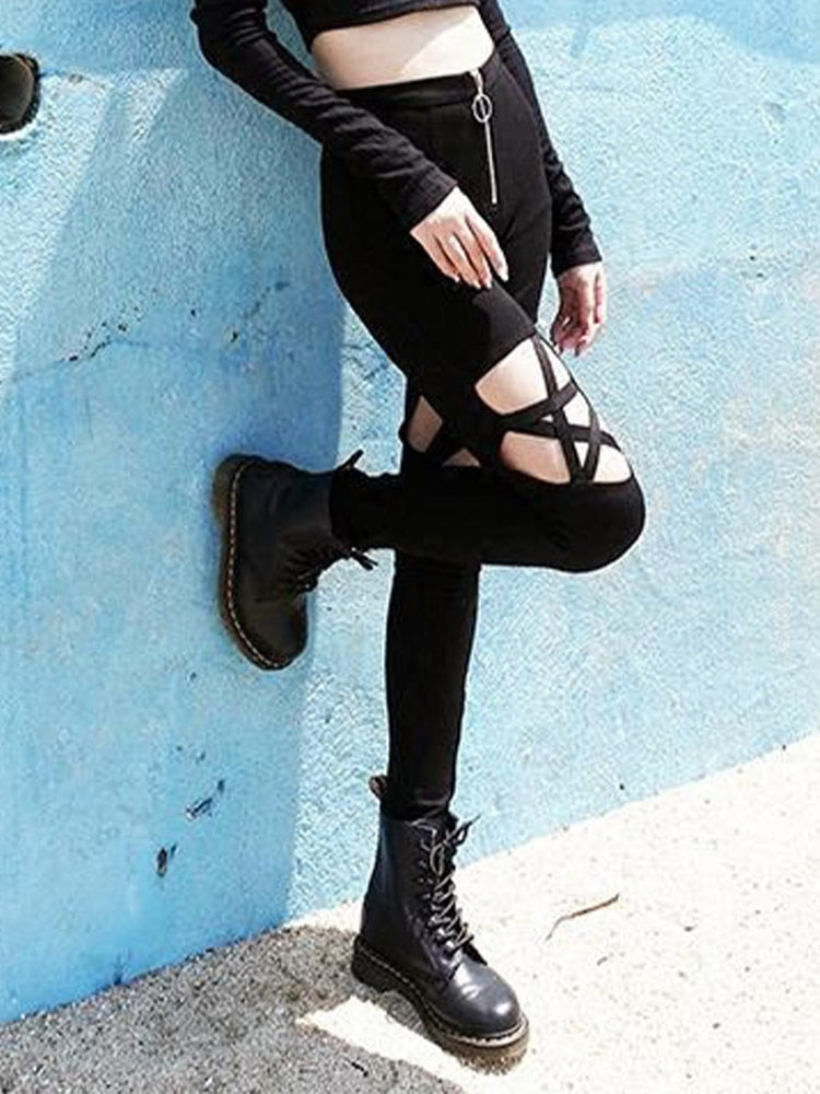 • Detalii Elegante: Detaliile decupajelor, imitațiile de fermoare și elementele patchwork transformă acești pantaloni într-o adevărată operă de artă a goticului modern. Ei surprind esența modei rebele cu rafinament.