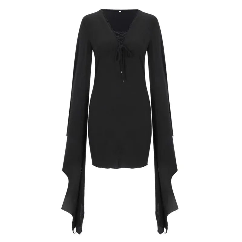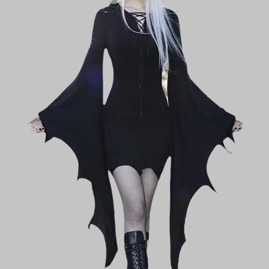 Rochie gotică neagră tip liliac, cu mâneci în formă de aripi