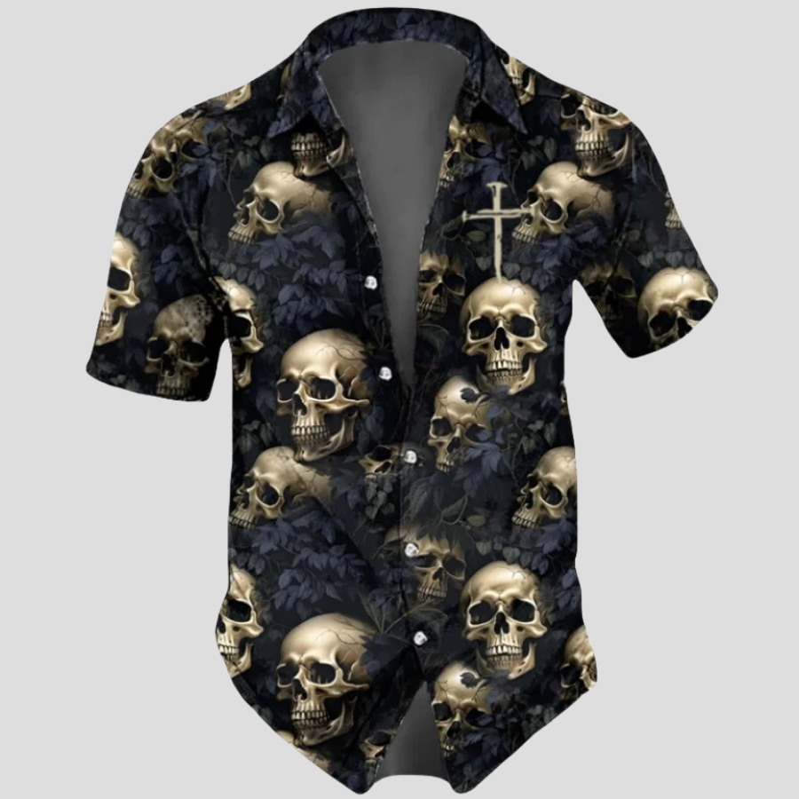 Cămașă rock cu cranii și trandafiri aurii, mânecă scurtă Vezi opțiunile