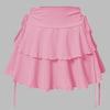 Fustă mini roz Jirai Kei cu volane și șnururi Vezi opțiunile