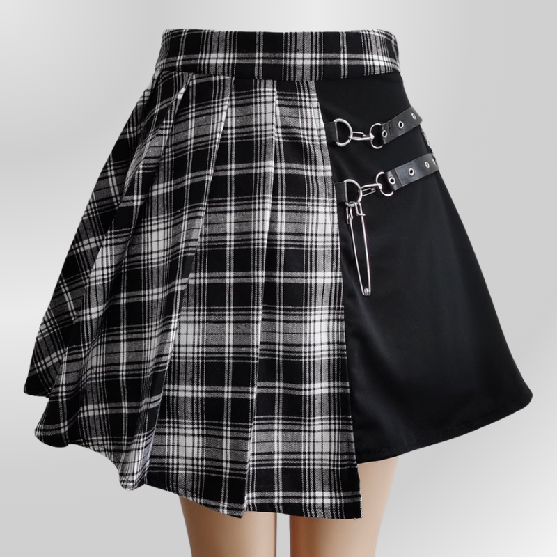 • Lungime Mini Elegantă: Lungimea mini a fustei este în același timp șic și îndrăzneață, ideală pentru iubitorii stilului gotic modern.