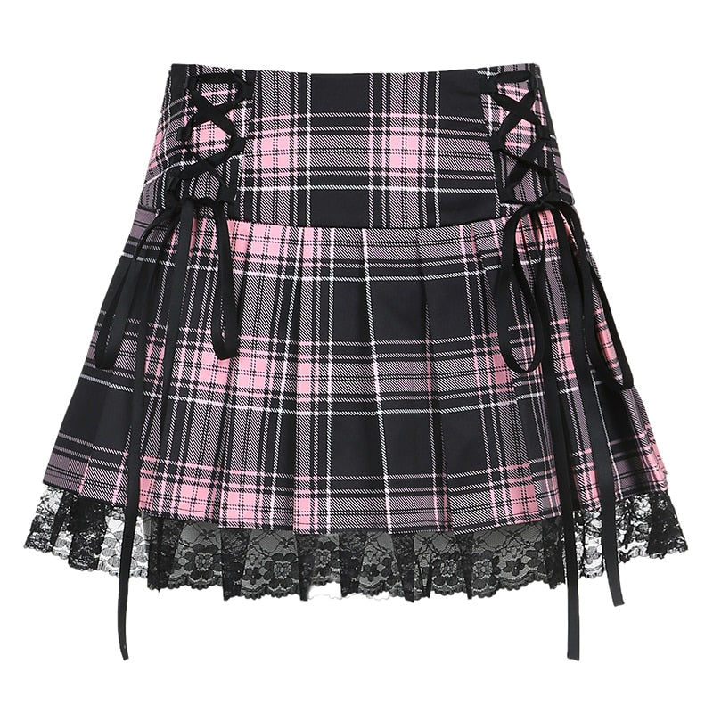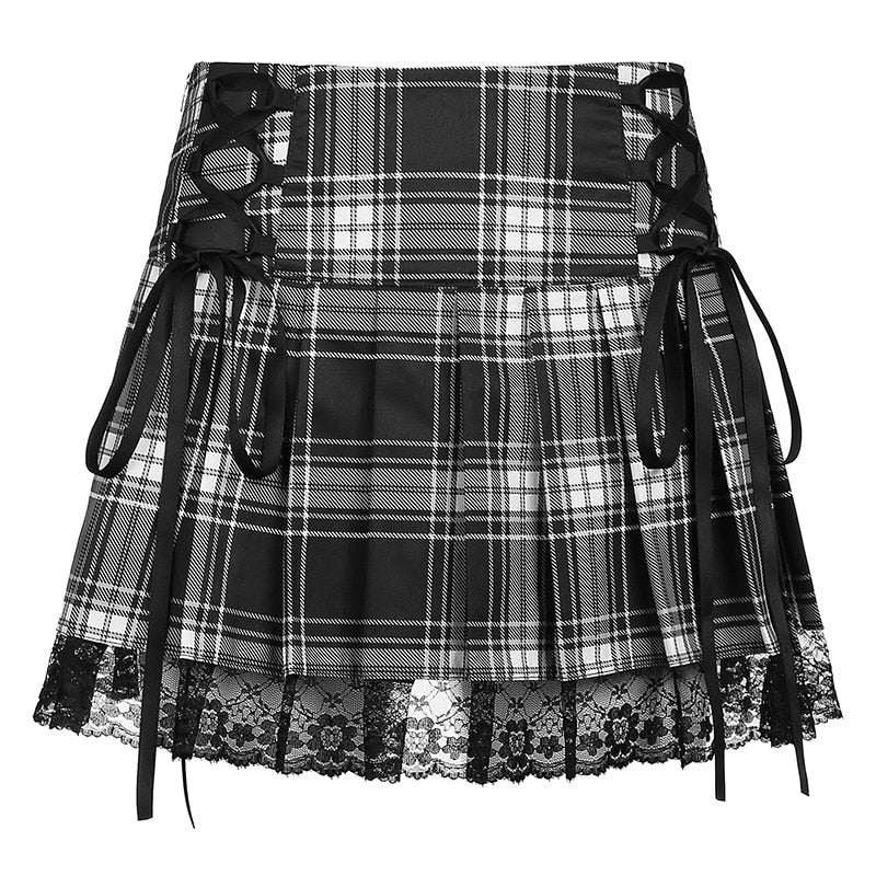 Fustă grunge cu carouri alb-negru